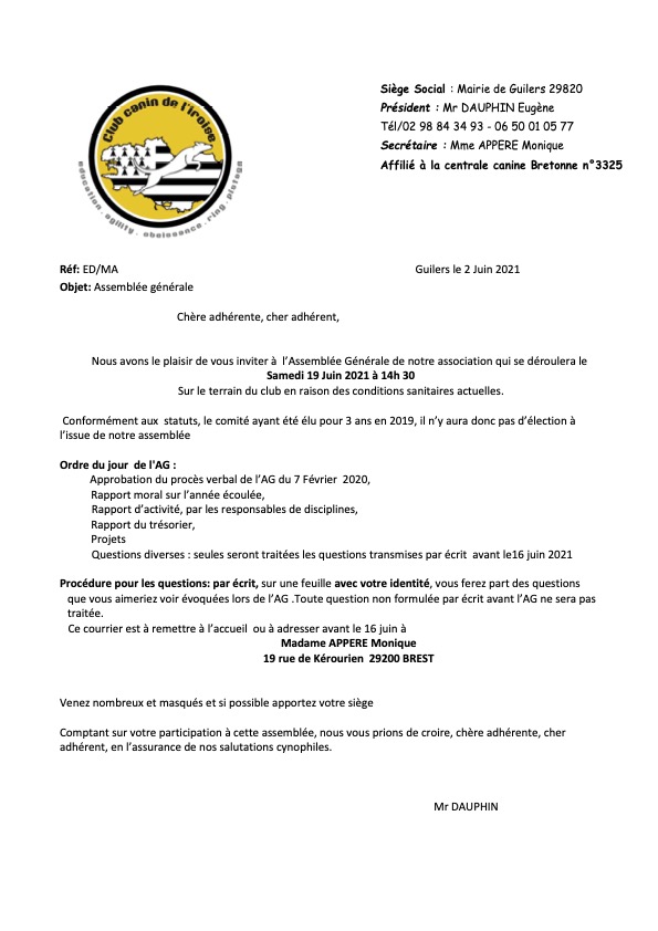 Info pour les adhérents